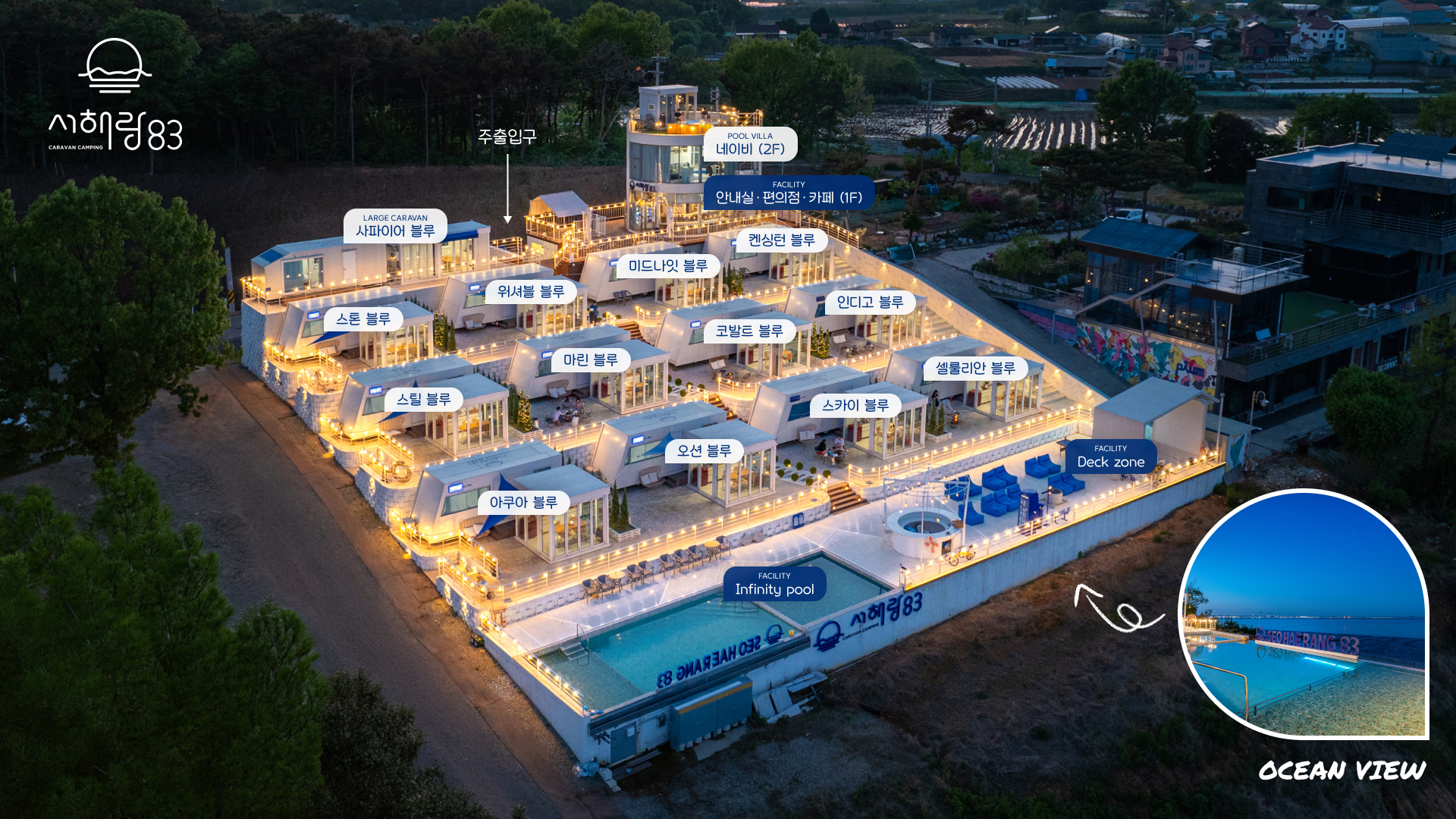 서해랑83은 서해대교 옆에 위치한 서해 바다뷰를 가진 럭셔리 카라반 캠핑장입니다.